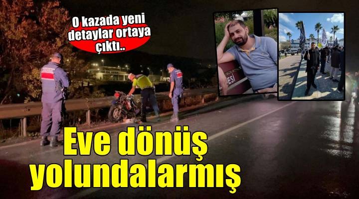 Kazada ya?am?n? yitiren iki arkada??n Bornova Ayakkab?c?lar Sitesi'nde çal??t?klar?, i?ten eve dönü? yolunda kazada hayatlar?n? kaybettikleri ö?renildi. ?zmir Adli T?p Kurumu’nda otopsi i?lemleri tamamlanan Osman Haciali ve Muhammed Ahmed'in cenazeleri yak?nlar? taraf?ndan teslim al?nd?. Haciali ve Ahmed'in memleketleri Suriye'nin Halep kentinde topra?a verilece?i ö?renildi.