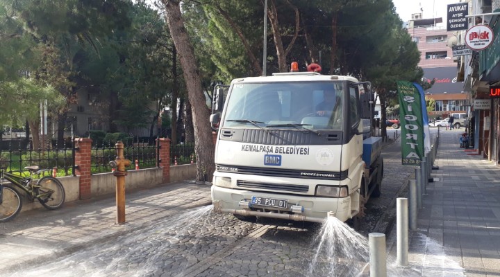 Kemalpa?a Belediyesi, dünyay? etkisi alt?na alan koronavirüs salg?n?yla mücadeleyi aral?ks?z sürdürüyor. Temizlik ??leri Müdürlü?ü ekipleri, yeni tip koronavirüs (Kovid-19) tedbirleri kapsam?nda ilçedeki cadde, sokak ve halk?n yo?un kulland??? alanlar? solüsyonlu suyla y?kayarak dezenfekte ediyor. Rutin olarak yap?lan kent temizli?inin yan? s?ra dünya genelinde tehdit olu?turan Koronavirüs’e kar?? çal??malar?n? yürüten ekipler, ilçe genelinde bulunan çöp konteynerlerini de dezenfekte ederek mikroplardan ar?nd?r?yor.