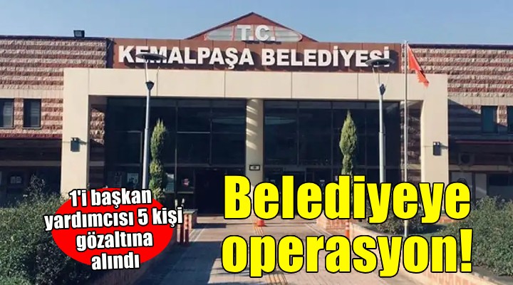 Polis ekipleri Kemalpa?a Belediye Ba?kan Yard?mc?s? A.B, belediyenin bu konudaki idari soru?turmas? kapsam?nda daha önce aç??a al?nan eski Kültür ve Sosyal ??ler Müdürü H.B, belediye personelleri S.K. ve B.B. ile organizasyon ?irketi yetkilisi S.P'yi gözalt?na ald?. AA
