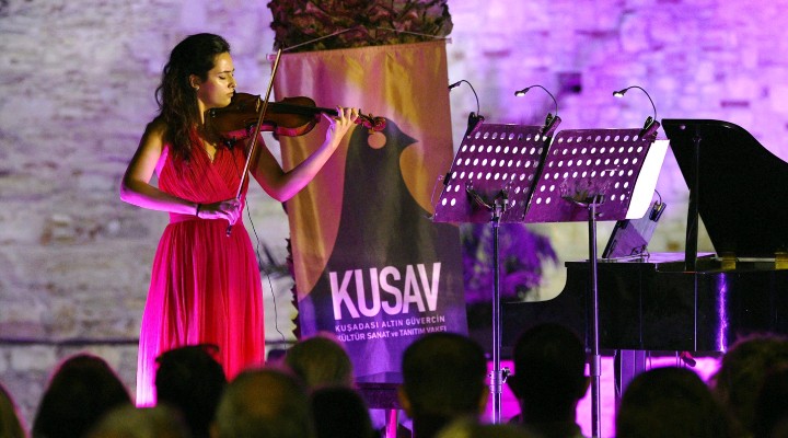 Klasik kemandaki yetene?iyle ismi Türkiye s?n?rlar?n? a?an Ilg?n Top, tarihi Güvercinada Kalesi’nde muhte?em bir konser verdi. Genç Sanat Dinletileri kapsam?ndaki konseri çok say?da sanatseverle birlikte Ku?adas? Belediye Ba?kan? Ömer Günel, belediye ba?kan yard?mc?lar? ve KUSAV Ba?kan? Levent Köylü de izledi. Performans?yla izleyenleri büyüleyen sanatç?ya piyanoda Ça?da? Özkan e?lik etti. Genç yetenek, konserinde Johann Sebastian Bach, Niccolo Paganini, Camille Saint Saëns ve Johannes Brahms’?n bestelerini çald?. Konser sonunda Ba?kan Ömer Günel, Ilg?n Top’a te?ekkür ederek çiçek verdi.