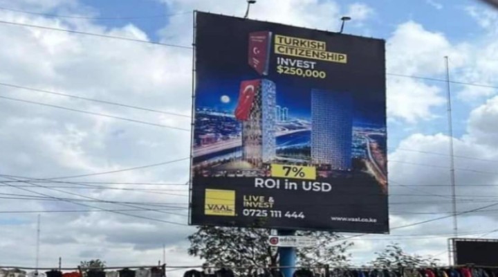 250 bin dolarl?k gayrimenkul kar??l???nda Türk vatanda?l??? olmak AKP hükümetiyle birlikte mümkün olmu?tu. Bunun üzerine ise geçti?imiz aylarda vatanda?lar? taraf?ndan en çok göç edilen ülkelerden biri olan Kenya'da bir internet sitesi üzerinden sat?l?k Türk vatanda?l??? ilan? verilmi?ti.