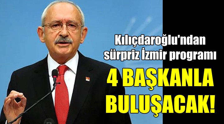 CHP Genel Ba?kan? Kemal K?l?çdaro?lu, ?zmir'de 117 yurtta??n ya?am?n? yitirdi?i 30 Ekim depremi sonras?nda yap?lan çal??malar konusunda bilgi almak üzere kente geliyor. K?l?çdaro?lu'nun günübirlik ?zmir program? sabah saat 10.00'da ?zmir Büyük?ehir Belediye Ba?kan? Tunç Soyer, Bayrakl? Belediye Ba?kan? Serdar Sandal, Bornova Belediye Ba?kan? Mustafa ?du? ve Seferihisar Belediye Ba?kan? ?smail Yeti?kin ile yap?lacak toplant?yla ba?layacak. Depremin vurdu?u 3 ilçenin ba?kanlar? ve ?zmir Büyük?ehir Belediye Ba?kan? Soyer ile bulu?acak CHP liderine, depremin ard?ndan yap?lan çal??malar ve kentsel dönü?üm süreciyle ilgili brifing verilecek