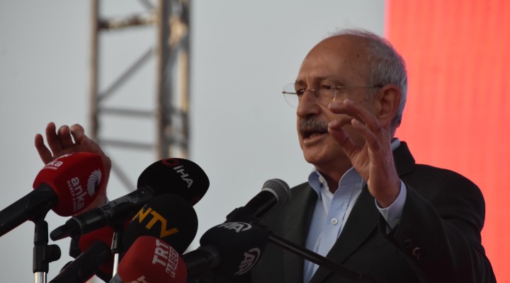 "Türkiye'nin gündeminde bütün dikkatleri ba?ka yere çekmek gibi bir çabalar? var. Bunu gayet iyi biliyorum. Dün Erdo?an ?zmir'e geldi. Bir sürü laflar etti. Ne dedi?ini ben gayet iyi biliyorum. Ama ?u cümle çok önemli, 'Ben cumhurba?kanl???m? ortaya koyuyorum, sen genel ba?kanl???n? koyuyor musun? ?zmir'den, ilk kur?unun at?ld???, dü?man?n denize döküldü?ü kentten sesleniyorum, ayd?nl???n kentinden sesleniyorum; onun yak?nlar?na da sesleniyorum; Sen ister cumhurba?kanl???n? koy ister koyma, seninle istedi?in her yerde tart??maya haz?r?m. Daha bitmedi. Bizde yürek var, al?n teri var. Bizde namuslu insan olmak var. Bizde kul hakk?na sayg?, dürüstlük var. Bu niteliklere sahip olmayanlar bize kumpas kurmaya çal???yorlar. Buna asla izin vermeyece?iz. Say?n Erdo?an'a bir daha ça?r? yap?yorum. Olur ya benim dedi?im televizyona gelmezsin, ben senin istedi?in televizyona gelmeye haz?r?m. Gelmeyen namerttir."