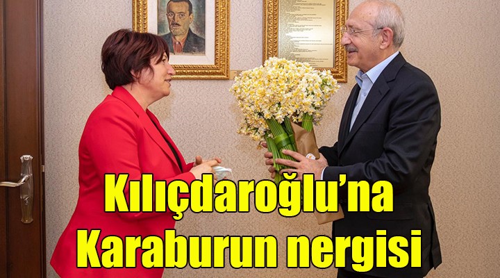 CHP Parti Genel Merkezi’ndeki ziyarette, K?l?çdaro?lu’na Karaburun’un simgelerinden nergis çiçeklerini ve belediyeye ait fabrikalarda kad?nlar?n üretti?i peynir ve zeytinya??n? da arma?an eden Erdo?an, “Karaburun’daki hem?ehrilerimin ve üreticilerimizin selam ve te?ekkürlerini, kendi üretti?imiz ürünler ve nergislerimiz ile birlikte Say?n Genel Ba?kan?m?za takdim etmekten mutluluk duydum” dedi.