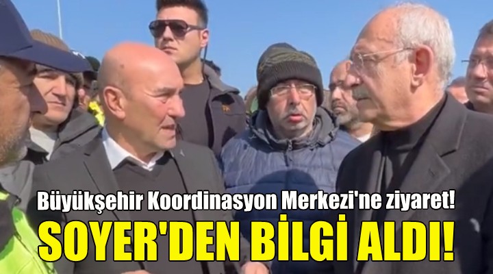 Cumhuriyet Halk Partisi (CHP) Genel Ba?kan? Kemal K?l?çdaro?lu, ?zmir Büyük?ehir Belediye Ba?kan? Tunç Soyer ve büyük?ehir belediye ba?kanlar?, ?zmir Büyük?ehir Belediyesi taraf?ndan Hatay’da olu?turulan çad?r alan?n? ziyaret etti. CHP Genel Ba?kan? K?l?çdaro?lu, Ba?kan Tunç Soyer’den çal??malarla ilgili bilgi ald?.