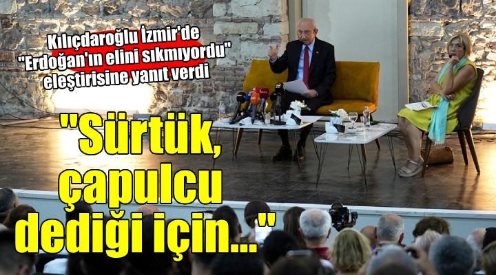 “Siz susmay?n, konu?abilin diye elini s?km?yorum. Halk?m?za sürtük, çapulcu dedi?i için elini s?km?yorum. Partime ve kendinden olmayan seçmene terörist dedi?i için elini s?km?yorum. Milletin paras?na el uzatt??? için elini s?km?yorum. Gezi’de hayat?n? kaybeden Ali ?smail Korkmaz ve Berkin Elvan için elini s?km?yorum yüzüne bakm?yorum. Bana hakaret etti?i için de?il. Beni tehdit etti?i için de?il. Linçlere, sald?r?lara u?rad???m için de?il. Süleyman ?ah Türbesi’ni kaç?r?p vatan topra??n? terk etti?i için elini s?kmayaca??m. Türkiye’yi s???nmac? deposuna çevirdi?i için elini s?kmayaca??m. Seçimlerde sahte videolar haz?rlad??? için yüzüne bakmayaca??m ve elini s?kmayaca??m. Biz Saray’daki zat’?n elini s?kmayaca??z, mücadele edece?iz.”