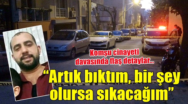 Olay, 4 Ocak'ta, Buca ilçesine ba?l? Koza?aç Mahallesi 249/1 Sokak'ta meydana geldi. Ayn? binada altl? üstlü oturan Adem Ate? ile kom?usu emekli uzman çavu? Kemal Y?ld?z, çocuk gürültüsü nedeniyle tart??t?. Taraflar, emniyete gidip birbirlerinden ?ikayetçi olduktan sonra eve döndü. Ate?, iddiaya göre, Y?ld?z'? d??ar? ça??rd?. Ç?kan kavgada Y?ld?z, Ate?'i tabancayla vurdu. Ambulansla Buca Kad?n Do?um ve Çocuk Hastal?klar? Hastanesi'ne kald?r?lan, evli ve ikiz çocuk babas? Adem Ate?, kurtar?lamad?. Evde yakalanan Kemal Y?ld?z ile azmettirici oldu?u iddias?yla gözalt?na al?nan babas? Kaz?m Y?ld?z, tutukland?. Bir süre cezaevinde kalan Kaz?m Y?ld?z, adli kontrol ?art?yla serbest b?rak?ld?.