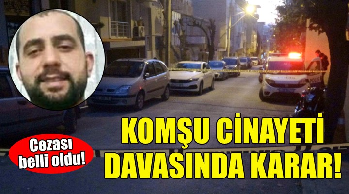 San?klar?n yarg?lanmas?na bugün ?zmir 23'üncü A??r Ceza Mahkemesi'nde devam edildi. Tutuklu san?k Kemal Y?ld?z, duru?maya Ses ve Görüntü Bili?im Sistemi (SEGB?S) ile kat?ld?. Adem Ate?'in e?i Senem Ate? ve taraf avukatlar? salonda haz?r bulundu. San?k Kemal Y?ld?z'?n kendilerini daha öncesinde de tehdit etti?ini belirten Ate?, san???n en a??r ?ekilde cezaland?r?lmas?n? talep etti. Duru?mada söz alan san?k Kemal Y?ld?z ise öldürme kast?n?n olmad???n? belirterek tahliyesini istedi. Savunmalar?n ard?ndan karar aç?kland?. Heyet, Y?ld?z'? 'Haks?z tahrik alt?nda kasten öldürme' suçundan 18 y?l hapis cezas?na çarpt?rd?. Ölen Kaz?m Y?ld?z'?n davas? ise dü?tü.