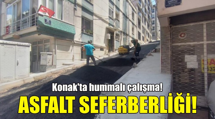 Konak Belediyesi ekipleri ilçe genelinde yürüttü?ü asfaltlama çal??malar?na ara vermeden devam ediyor. Konak Belediye Ba?kan? Abdül Batur’un da göreve geldi?i günden bugüne büyük önem vererek, bizzat takip etti?i düzenleme ve yenileme çal??malar?yla ilçede yüzlerce sokak yeni görünümlerine kavu?turuldu.