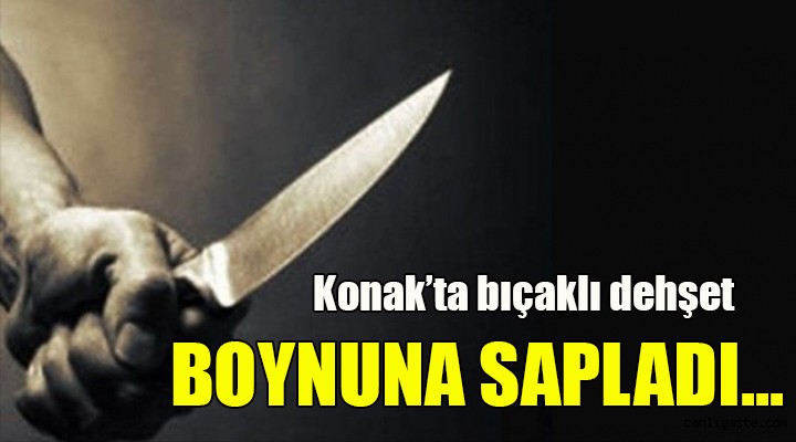Olay, Konak ilçesine ba?l? Ferahl? Mahallesi'nde meydana geldi. Murat A. (48), sokak ortas?nda henüz belirlenemeyen nedenle G.Ö. (33) ile tart??maya ba?lad?. Tart??man?n k?sa sürede büyümesi üzerine G.Ö. ekmek b?ça?? ile Murat A.'ya sald?rd?. Murat A. boynuna ald??? b?çak darbesi ile a??r yaralan?rken, can havli ile olay yerinden kaçt?. Bu s?rada çevredekilerin ihbar? üzerine olay yerine gelen polis ekipleri, G.Ö.'yü suç aleti b?çak ile birlikte yakalad?. Ambulansla Sa?l?k Bilimleri Üniversitesi Tepecik E?itim ve Ara?t?rma Hastanesi'ne kald?r?ld??? ö?renilen Murat A.'n?n hayati tehlikesinin bulundu?u ö?renildi. Polis olayla ilgili soru?turma ba?latt?.