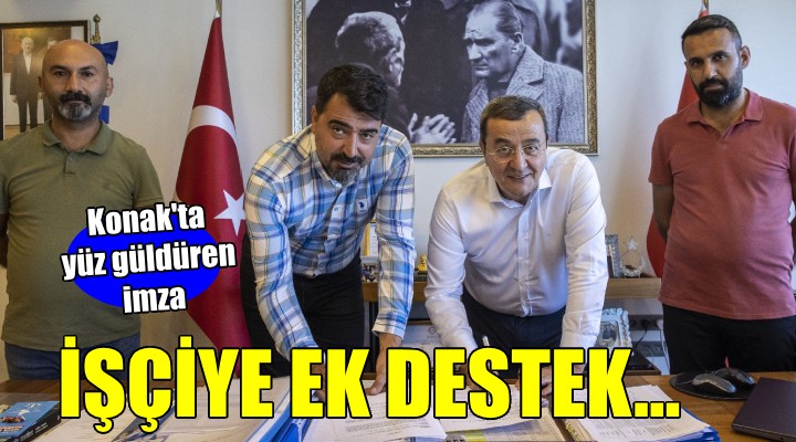Konak Belediyesi’nde çal??anlar?n yüksek enflasyon kar??s?nda al?m güçlerinin dü?mesini önlemek, g?dadan akaryak?ta her alandaki zam ya?murundan i?çileri korumak için ek önlemler al?nd?. Konak Belediye Ba?kan? Abdül Batur ile D?SK Genel-?? ?zmir 5 No’lu ?ube Ba?kan? Sava? Aras ve yönetim kurulu üyeleri, Konak Belediyesi MERBEL ?irket Müdürü Ali Gökdermen ve SODEMSEN (Sosyal Demokrat Kamu ??verenleri Sendikas?) aras?nda yap?lan görü?melerden i?çi lehine kararlar ç?karak, toplu i? sözle?mesine ek protokol olu?turuldu.