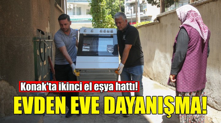 Konak Belediyesi’nin evden eve dayan??ma halkas?yla Konakl?lar aras?ndaki dayan??ma ba?? güçleniyor. Kullan?labilir durumdaki ihtiyaç fazlas? ev e?yalar?n? ihtiyaç sahiplerine ula?t?rabilmek için kurulan ?kinci El E?ya Hatt? ile yüzler gülüyor. Ev e?yas?n? de?i?tiren ya da yenileyen Konakl?lar?n, kullan?labilir durumda olan koltuk, masa, sandalye, yatak, hal?, elektronik ev aletleri, televizyon, beyaz e?ya, buzdolab?, çama??r ve bula??k makinesi gibi ev e?yalar?, Konak Belediyesi arac?l???yla ihtiyaç sahiplerine ula?t?r?l?yor.
