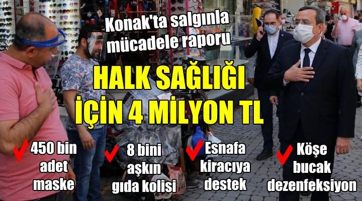 Konakl?lara 450 bin adet maske, 21 bin 472 eldiven, 21 bin 500 litre dezenfektan da??tan, zor durumda kalan vatanda?lara 7 bini a?k?n g?da kolisi ula?t?ran Konak Belediyesi, salg?nla mücadeleye 4 milyon TL harcad?.
