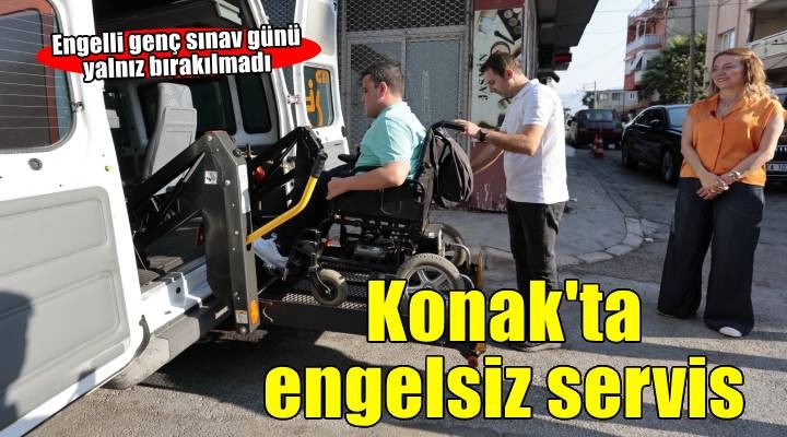 Konak Belediyesi’nin, engelli bireylerin hayat?n? kolayla?t?ran ücretsiz hizmeti “Engelsiz Servis”, bedensel engelli Muhammet Semih Eliaç?k’?n talebi üzerine Yüksekö?retim Kurumlar? S?nav? (YKS) için yollara dü?tü. Yakla??k bir y?ld?r, özellikle sa?l?k kurulu?lar?na ula??mda Engelsiz Servis hizmetinden yararlanan Eliaç?k, YKS 1. Oturum Temel Yeterlilik Testi (TYT) s?nav yerinin evine oldukça uzak bir noktada olmas? nedeniyle Konak Belediyesi’ne ba?vurdu. Konak Belediyesi Sa?l?k ??leri Müdürlü?ünün (0232) 484 22 91 numaral? telefonunu arayarak randevu olu?turan Eliaç?k, s?nav günü belirlenen saatte Engelsiz Servis ile Gültepe’deki evinin önünden al?nd?. Konak Belediye Ba?kan? Nilüfer Ç?narl? Mutlu, bu özel günde engelli genci ve ailesini yaln?z b?rakmad?. Ba?kan Mutlu, Engelsiz Servis’e binerek yol boyunca e?lik etti?i Eliaç?k’?n s?nav heyecan?n? payla?t?. Eliaç?k’? Gaziemir’de s?nava girece?i okulun kap?s?na kadar b?rakan Ba?kan Mutlu, ba?ar?lar dileyerek kendisini motive etti. Eliaç?k, s?nav?n? bitirdikten sonra evine yine Engelsiz Servis ile döndü.