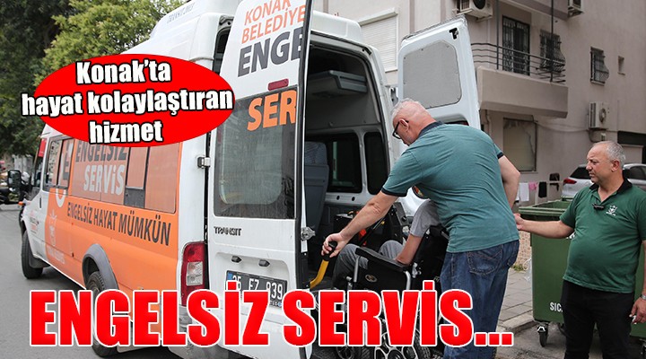Konak Belediyesi’nin bedensel engelli bireylerin kullan?m? için özel tasarlanan arac? ‘Engelsiz Servis’ belediyenin Sa?l?k ??leri Müdürlü?ü bünyesinde hizmet vermeye devam ediyor. Tekerlekli sandalye kullanan bireyler için asansör sistemine de sahip olan araç, ba?vuru yapan Konakl?lar?n sa?l?k kurulu?lar?na ula??m?n? sa?l?yor. Engelli bireylerin ya?am?n? kolayla?t?rmak için hafta içi her gün yola ç?kan Engelsiz Servis, randevusu olan vatanda?lar? kap?s?n?n önünden alarak sa?l?k kurulu?una götürüyor. Tedavi veya muayenesi biten engelli vatanda?, sa?l?k kurulu?undan yine Engelsiz Servis arac?l???yla al?narak evine ula??m? sa?lan?yor. Engelsiz Servis’ten yararlanmak isteyen Konakl?lar (0232) 484 22 91 numaral? telefondan bilgi ve randevu alabiliyor.