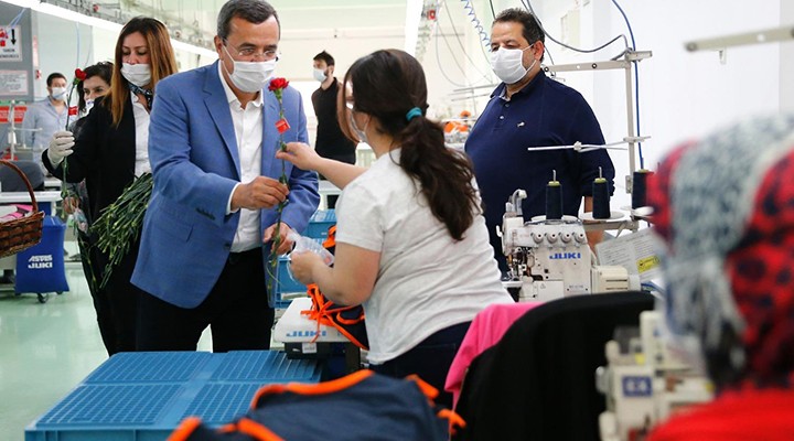 Konak Belediye Ba?kan? Abdül Batur’un, Anneler Günü kapsam?nda gerçekle?tirdi?i ziyaretlerin ilk dura?? Ç?narl?’da üretime güç katan tekstil i?çisi kad?nlar oldu. Ba?kan Batur’un CHP Konak ?lçe Ba?kan? Ça?r? Gru?çu ve CHP Konak ?lçe Kad?n Kollar? Nurten Serhadbeyi ile birlikte gerçekle?tirdi?i ziyarette çal??an annelere k?rm?z? karanfiller arma?an edildi. Sosyal mesafe ve hijyen kurallar?na uygun çal??ma ortam?nda üretimi kesintiye u?ratmadan çal??an emekçi kad?nlar?n Anneler Günü’nü kutlayan Ba?kan Batur, “Dünya ve Türkiye olarak çok zor bir dönemden geçiyoruz. Bu salg?n felaketinin sa?l?k yönünden getirdi?i zorluklar?n yan?nda bir de ekonomi boyutu var. Sizler, üretim sektöründeki kad?nlar olarak bizim gurur kayna??m?zs?n?z. Hepinizin Anneler Günü’nü içten kutluyorum. Kendinize çok dikkat edin, sosyal mesafe kurallar?n? lütfen uygulay?n. Sizler bizim için önemlisiniz, çünkü ülkemizi üreten kad?nlar kalk?nd?racak” dedi.