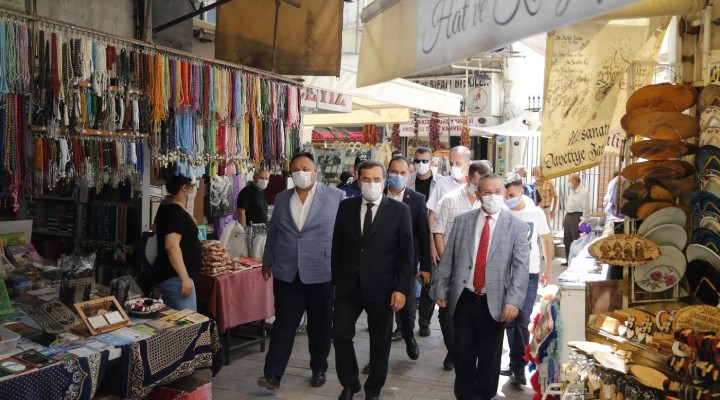 ?zmir’in en kalabal?k noktas? olan Kemeralt?’nda gün boyu yap?lan denetimlerde Konak Belediyesi Zab?ta Müdürlü?ü ekipleri de, salg?nla mücadelede temel prensip olan temizlik, maske ve mesafe konusunda gerekli uyar? ve bilgilendirici çal??malarda bulundu. Kemeralt? Vilayet giri?inden ba?layarak, salg?nla mücadelede vatanda?lar?n ve esnaf?n al?nan önlemlere uyulmas?n?n önemine dikkat çektiler.