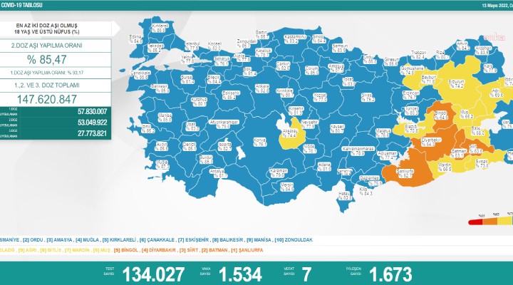 Sa?l?k Bakanl???'n?n yay?nlad??? günlük Covid-19 tablosuna göre; ülke genelinde 1, 2, ve 3. doz olarak yap?lan toplam a?? say?s? 147 milyon 620 bin 847 oldu.