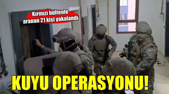 Emniyet Genel Müdürlü?ü ?stihbarat Ba?kanl???, KOM Ba?kanl??? ve ?nterpol Europol Daire Ba?kanl??? koordinesinde; ?l Emniyet Müdürlükleri KOM ?ube Müdürlükleri ve ?stanbul Göçmen Kaçakç?l??? ile Mücadele ve Hudut Kap?lar? ?ube Müdürlü?ünce Antalya, Bursa, ?stanbul, ?zmir, Mersin, Sakarya, Samsun ve Trabzon olmak üzere 8 ilde "Kuyu-21” operasyonlar? düzenlendi.
