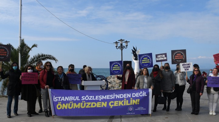 25 Kas?m Kad?na Yönelik ?iddetle Mücadele Günü nedeniyle Ku?adas? Kent Konseyi Kad?n Meclisi üyeleri de ?smail Cem Dostluk ve Bar?? Meydan?’nda bir araya gelerek bas?n aç?klamas? yapt?. “?stanbul Sözle?mesi’nden de?il, önümüzden çekil” pankart? ta??yan Ku?adas? Kent Konseyi üyesi kad?nlar ad?na konu?an Kad?n Meclisi Yönetim Kurulu Üyesi Saliha Ünal, son yirmi y?ld?r kad?na yönelik ?iddet vakalar?n?n her geçen gün artt???na dikkat çekerek ?öyle dedi: “Kad?nlar?n hayatlar?n? ve kazan?lm?? haklar?n? yok etmeye yönelik politikalar gün geçtikçe artmakta, bunun sonucunda da kad?na yönelik her türlü ?iddet ve kad?n cinayetleri me?rula?t?r?lmaktad?r. Bunun kar??s?nda halk?n ç?karlar?n? ön plana alan, özgürlüklerin ve demokrasinin, laikli?in, bilimsel dü?üncenin egemen k?l?nmas?, e?itim sisteminin düzenlenmesi ve kad?na yönelik ?iddete kar?? yeterli bütçe ayr?lmas? zorunludur. Bir taraftan kutsal kad?nl?k, annelik ve kutsal aile miti arac?l???yla kad?nlara de?er verildi?i iddia edilmektedir. Oysaki kad?nlar en çok aile içi ve yak?n ili?kide oldu?u erkekler taraf?ndan ?iddete maruz kalmaktad?r. Erkek ?iddetini cesaretlendiren söylem ve uygulamalar, failleri koruyan yarg?ya kadar, kad?nlar?n kamusal alandan uzakla?t?r?lmas?n? hedefleyen tüm uygulamalar gösteriyor ki, laiklik mücadelesi kad?nlar?n ya?am ve e?itlik mücadelesinin ayr?lmaz bir parças?d?r.” Kad?nlar olarak e?it ve ?iddetten uzak bir hayat için mücadele etmekten vazgeçmeyeceklerini vurgulayan Saliha Ünal, hükümete ça?r? yaparak “Art?k yeter! Görevinizi yap?n, e?itli?i sa?lay?n, cinsiyete dayal? ?iddet ve ayr?mc?l??a son verin” dedi.