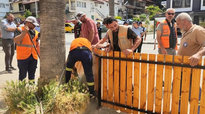 Ku?adas? Belediyesi Zab?ta Müdürlü?ü ekipleri, vatanda?lar?n huzuru ve sa?l??? için gece gündüz demeden çal???yor. Ekipler y?l boyunca Güvercin Masa, whatsapp ihbar hatt? ve C?MER arac?l???yla kendilerine iletilen ?ikâyetleri de?erlendirip, gerekli tüm müdahaleleri yap?yor. S?f?r i?galiyeden taviz vermeyen Zab?ta Müdürlü?ü ekipleri, bu kurala uymayan ki?i, firma ve kurumlar hakk?nda da yasal i?lemleri vakit kaybetmeden gerçekle?tiriyor. Bu kapsamda son olarak ekiplerce Kad?nlar Denizi Mahallesi’ndeki bir kald?r?m?n üzerine ticari i?letme taraf?ndan monte edilen ah?ap çitler, yap?lan tüm uyar?lara ra?men verilen yasal süre içerisinde kald?r?lmay?nca, Fen ??leri Müdürlü?ü ekiplerinin yard?m?yla zarar verilmeden söküldü. Yap? Kontrol Müdürlü?ü yetkililerinin gözetiminde yap?lan çal??ma, bölge sakinleri taraf?ndan memnuniyetle kar??land?