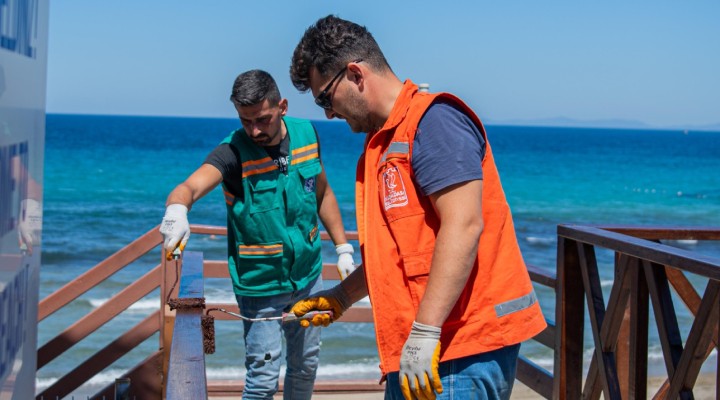 Bu kapsamda ekipler, yaz sezonunda yerli ve yabanc? tatilci ak?n?na u?rayan Kad?nlar Denizi plaj?nda yer alan ah?ap çitlerin bak?m, onar?m ve boyama i?lemlerini tamamlad?. K?? mevsimi boyunca hava ko?ullar? ve ya???lar nedeniyle y?pranan çitlerin yenilenmi? görüntüsü be?eniyle kar??land?.