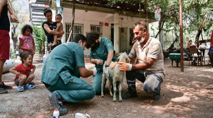 Ku?adas? Belediyesi Sa?l?k ??leri Müdürlü?ü’ne ba?l? olarak hasta ve yaral? hayvanlara ilk müdahalede bulunmak amac?yla hizmet veren iki Haybulans arac?ndan birisi, bir veteriner hekim ve bir veteriner teknisyeni ile birlikte Marmaris’e ula?t?. Orhaniye bölgesinde alevlerden ve dumandan zarar gören büyükba? ve küçükba? hayvanlar ile evcil ve yabani hayvanlar? tedavi etmeye ba?layan Haybulans arac?, hayvanlar için yem ve mama deste?inde de bulundu.