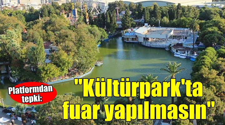 SONKALE?ZM?R-Kültürpark Platformu, yaz?l? aç?klamas?nda "Kültürpark do?al, ekolojik yap?s? ile sanat, kültür, spor, e?lence olanaklar?n? bir arada sunna 2. Derece Do?al ve Tarihi Sit Alan?'d?r. Gaziemir'de kurulan Fuar ?zmir alan? i?levsel olarak kullan?larak Kültürpark'ta fuarc?l?k etkinlikleri sona erdirilmelidir. Çe?itli sponsor kurulu?lar?n Kültürpark'? rant alan? olarak kullanmalar? bir kent suçudur ve kente ihanettir" denildi.
