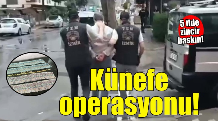 ?zmir Cumhuriyet Ba?savc?l??? koordinesindeki ?l Emniyet Müdürlü?ü'ne Terörle Mücadele ?ube Müdürlü?ü ile ?stihbarat ?ube Müdürlü?ü ekipleri, FETÖ/PYD'nin güncel yap?lanma faaliyetlerinin de?ifre edilmesine yönelik bir künefe zinciri ile ilgili çal??ma yapt?. Mali Suçlar? Ara?t?rma Kurulu'ndan (MASAK) elde edilen verilerin incelemesinde örgüt ad?na fon toplayan veya sa?layan, ifade ile te?hislerde ad? geçen ayr?ca örgüt mensuplar?ndan ele geçirilen dijital materyal incelemesinde suç unsurlar? tespit edilen 41 ?üpheliye yönelik bu sabah harekete geçildi.