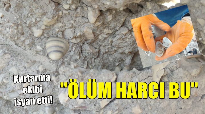 ?zmit Belediyesi Arama Kurtarma Ekibinin (?ZBAK), K?r?khan’da çal??t?klar? enkazda, üç ki?iye mezar olan binan?n harc?ndan deniz kumu ve midye kabuklar? ç?kt?.
