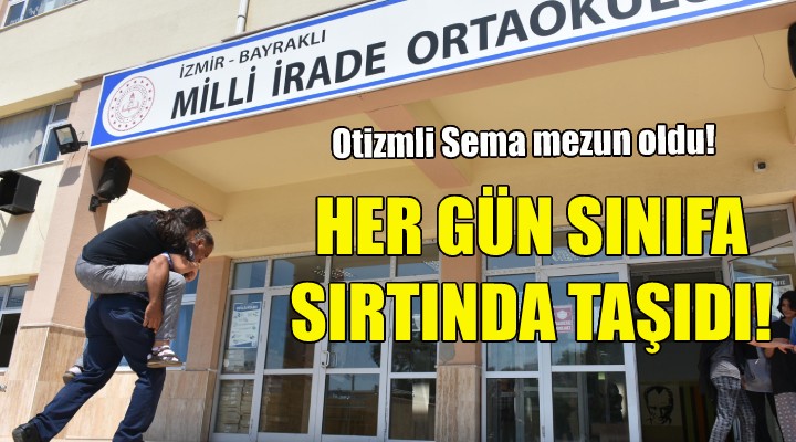 Onur Mahallesi'nde ya?ayan, apartman temizli?iyle geçimlerini sa?layan Turgut ile ?ükrüye Durna çifti, 14 y?l önce 2'nci çocuklar? Sema Durna'y? kucaklar?na ald?. ?lk çocuklar?n?n herhangi bir sa?l?k problemi bulunmayan çift, Sema 2 ya??na geldi?inde otizmli oldu?unu ö?rendi. Sema, ilerleyen zamanlarda yürüme ve görme güçlü?ü de çekmeye ba?lad?. Çift de hayatlar?n? Sema'ya adad?. Turgut Durna, k?z?n?n e?itimi için özverili mücadeleye giri?ti. Durna, hem fiziksel rahats?zl??? hem de korktu?u için tek ba??na serviste yolculuk yapmak istemeyen, Milli ?rade Ortaokulu Orta A??r Zihinsel ?ube 8'inci s?n?f ö?rencisi Sema'y? her sabah motosikletiyle okula götürüp, ç?k??ta da ald?. Durna, okul giri?indeki merdivenlerden ç?karken zorluk ya?ayan k?z?n?, s?rt?nda s?n?f?na kadar da ta??d?. Sema, babas?n?n deste?iyle okulundan ba?ar?yla mezun oldu.