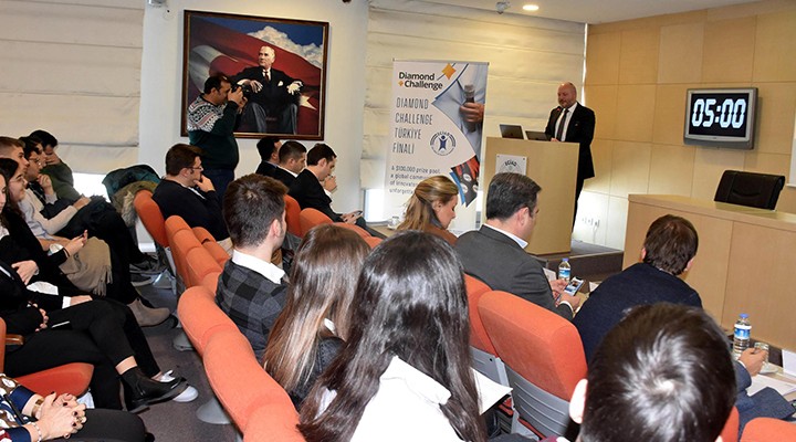 ABD'nin Delaware Üniversitesi'ne ba?l? lise ö?rencileri için giri?imcilik yar??mas? olan Diamond Challenge, Ege Genç ?? ?nsanlar? Derne?i (EG?AD) ve ABD'nin üniversiteye ba?l? giri?imcilik merkezi olan Horn Entrepreneurship arac?l???yla ilk kez Türkiye'de ve ?zmir'de düzenlendi. Dünyan?n dört bir yan?ndaki lise ö?rencilerine giri?imcili?i ilk elden deneyimleme imkan? sunan program?n Türkiye'de ilk kez EG?AD partnerli?inde ?zmir'de gerçekle?ti?ini söyleyen EG?AD Yönetim Kurulu Ba?kan? Mustafa Aslan, program kapsam?nda lise ö?rencilerinin giri?imci ekipler olu?turdu?unu ve Diamond Challenge sürecinde ?zmir'den 31 ekip ba?vurusunun al?nd???n? belirtti. 11 ekibin Diamond Challenge 2020 ?zmir Türkiye finali etkinli?inde yar??maya hak kazand???n? vurgulayan Aslan, birincili?i kazanan ekibin 16 -18 Nisan'da büyük ödül 100 bin Dolar için Daleware Üniversitesi'nce giderek Türkiye'yi temsil edece?ini kaydetti. Mustafa Aslan, bu yar??man?n dünyan?n dört bir yan?ndaki lise ö?rencilerine giri?imcili?i ilk elden deneyimleme imkan? sundu?una dikkat çekerek program?n Türkiye'de ilk kez EG?AD yerel partnerli?inde ?zmir'de gerçekle?ti?ini vurgulad?.