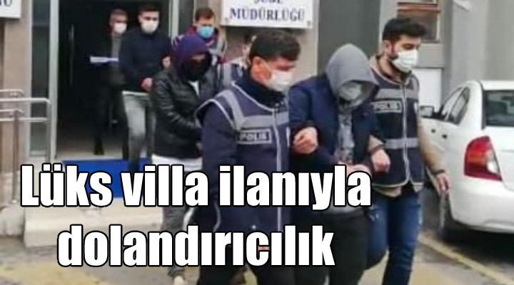 ?zmir Emniyet Müdürlü?ü Asayi? ?ube Müdürlü?ü Yankesicilik ve Doland?r?c?l?k Büro Amirli?i ekipleri, baz? ?üphelilerin, gayrimenkul ?irketlerine ait lüks villa ilanlar?n? kopyalay?p, olu?turduklar? internet sitesinde yay?nlayarak, kiralamak isteyenlerden pe?inat ve kaparo ad? alt?nda para ald?klar? bilgisi üzerine harekete geçti.  Pandemi sürecinde izole ya?amay? tercih edenleri ma?dur eden ?üphelilerin 4 ki?i oldu?u ve 20 ki?iden toplam 200 bin TL ald??? belirlendi. ?üphelilerin, bin ile 20 bin TL aras?nda de?i?en miktardaki kaporay? farkl? ki?ilerin banka hesaplar?na havale yapt?rd??? tespit edildi.