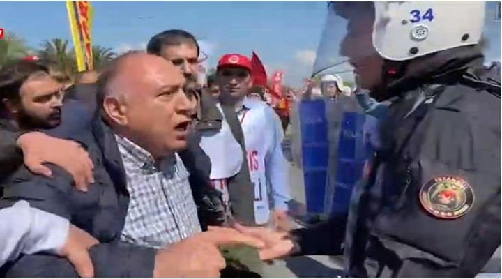 Gruplar?n alana giri?leri s?ras?nda polis bir korteje müdahale etti.