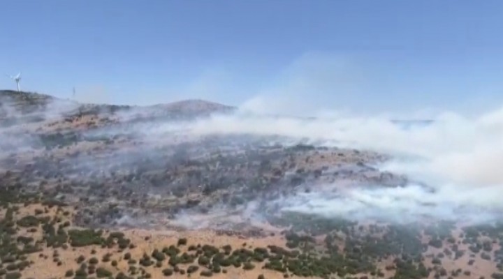 Henüz belirlenemeyen nedenle ç?kan yang?n, rüzgar?nda etkisiyle k?sa sürede yay?ld?. Saat 12.25 s?ralar?nda bölgeye ?zmir Orman Bölge Müdürlü?ü'ne ait 4 uçak, 4 helikopter, 15 arazöz, 7 su ikmal arac? ve 1 dozer sevk edildi. Ekiplerin alevlere müdahalesi sürüyor.