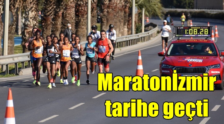 ?zmir tarihinin ilk uluslararas? maratonu Maraton?zmir’in ikincisi bugün ko?uldu ve 42 kilometre 195 metrelik yar??ta birincili?i erkeklerde Etiyopyal? Tsegaye Getachew, 2.09.35’lik müthi? derecesiyle elde etti. Tsegaye Getachew bu performans?yla Türkiye s?n?rlar? içinde erkeklerde bugüne kadar ko?ulan en iyi maraton derecesini elde etti. Böylelikle Maraton?zmir henüz ikinci y?l?nda ülkemizde en iyi derecenin ko?uldu?u maraton olarak tarihe geçti.