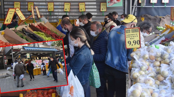 ?çi?leri Bakanl???'nca yeni tip koronavirüs (Covid-19) salg?n?yla mücadele kapsam?nda yay?mlanan genelgede 31 il için 23-26 Nisan tarihleri aras?nda soka?a ç?kma k?s?tlamas? getirildi. Genelge kapsam?nda marketlerin 23 ve 24 Nisan saat 09.00 ile 14.00 aras?nda aç?k olaca?? aç?kland?. Marketlerin kapanmas?na dakikalar kala ?zmirliler market önlerine ak?n etti. Vatanda?lar, geride kalan günler ve iftar için al??veri?lerini tamamlayarak evlerine döndü. Market yetkilileri, s?k s?k sosyal mesafe ça?r?s?nda bulundu. Vatanda?lar içeriye say?yla al?n?rken, baz?lar?n?n sosyal mesafeye uymad?klar? gözlendi.