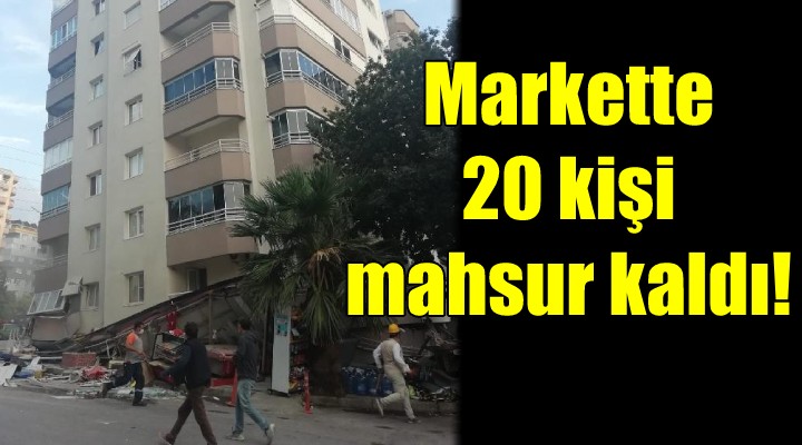 Ege Denizi’nde saat 14.51’de meydana gelen 6.6 büyüklü?ündeki depremde, Bayrakl?’daki 11 katl? binan?n ilk 3 kat? çöktü. Binan?n alt kat?nda bulunan tekel bayisinin çal??anlar? kendilerini d??ar? at?p, canlar?n? kurtard?. Ancak yan?ndaki zincir market ?ubesinde çal??anlar? ve baz? mü?terilerin mahsur kald??? öne sürüldü. Markette 20 ki?inin mahsur kald??? ifade edilirken, ihbar üzerine bölgeye AFAD ve itfaiye ekipleri sevk edildi. Ekipler, binada arama kurtarma çal??mas? ba?latt?.