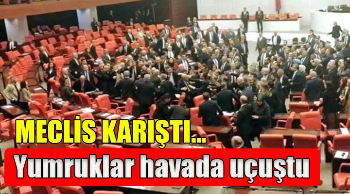 TBMM Genel Kurulu'nda CHP'nin ?dlib konusundaki önergesi görü?ülürken CHP ve AK Parti milletvekilleri aras?nda yumruklu kavga ç?kt?. TBMM Genel Kurulu, TBMM Ba?kanvekili Süreyya Sadi Bilginç ba?kanl???nda topland?. Genel Kurulu'da CHP'nin ?dlib'de Türk askerlerinin güvenli?ine ili?kin grup önerisi görü?ülürken, CHP Grup Ba?kanvekili Engin Özkoç, kürsüye ç?kt?. Özkoç'un, Genel Kurul'daki konu?mas? AK Parti milletvekillerinin tepkisine neden oldu. Genel Kurul öncesinde düzenledi?i bas?n toplant?s?nda Cumhurba?kan? Recep Tayyip Erdo?an'a yönelik sözleri nedeniyle de tepki toplayan Özkoç'un üzerine bir grup milletvekili yürüyünce gerginlik artt?. CHP milletvekillerinin de tart??maya dahil olmas?yla birlikte tart??ma büyüdü ve arbede ya?and?. Arbede yumruklu ve tekmeli kavgaya döndü. Baz? milletvekilleri arbede s?ras?nda yere dü?tü, sandalyeler devrildi. Ya?ananlar nedeniyle genel kurula ara verilirken, gerginlik devam ediyor.