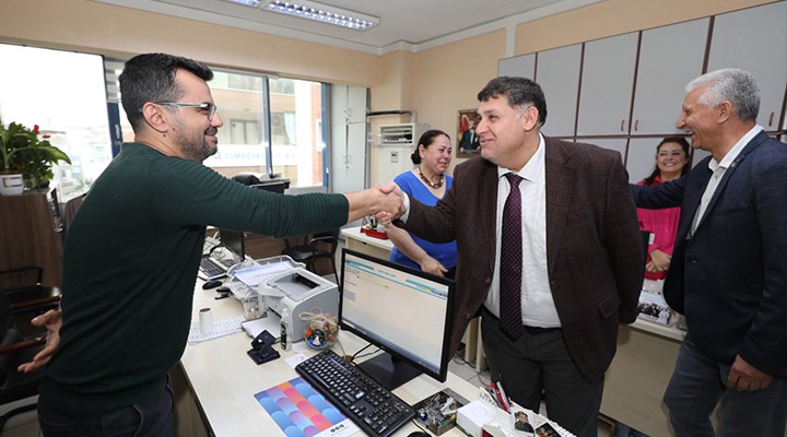 Menderes Belediyesi Ba?kan V. Özkan ilk olarak Özdere ?antiye, Gümüldür ?antiye, Temizlik ??leri ?antiye, Park ve Bahçeler Müdürlü?ü ?antiyesi, Fen ??leri ?antiyesi, Evde Sa?l?k Birimi çal??anlar? ile bayramla?t?. Ard?ndan belediye binas?nda çal??anlar? ile bir araya gelerek tüm çal??anlar?n tek tek bayramlar?n? kutlad?.