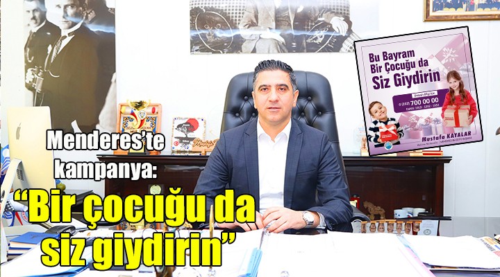 Kampanyayla ilgili bilgi veren Menderes Belediye Ba?kan? Mustafa Kayalar, “ Zor bir süreçten geçiyoruz. Salg?n nedeniyle i?inden olan, dara dü?en vatanda?lar?m?z?n say?s? ne yaz?k ki her geçen gün art?yor. Bu zor süreçte hem?ehrilerimizin yan?nda olmaya devam ediyoruz. Ramazan ay? olmas? nedeniyle ihtiyaç sahibi vatanda?lar?m?z için ba?latt???m?z g?da paketi kampanyas?na yard?mseverlerimiz büyük destek veriyor. Ramazan sonuna kadar 5 bin g?da paketini ihtiyaç sahibi ailelerimize ula?t?raca??z. ?imdi de çocuklar?m?z?n yüzünü güldürecek kampanyam?z? ba?latt?k. Yard?msever vatanda?lar?m?za ça?r?m?z? yap?yoruz, gelin bu bayramda bir çocu?u siz giydirin. Bu zor süreçte çocuklar?m?z?n yüzü gülsün. Tüm vatanda?lar?m?z? kampanyam?za destek olmaya davet ediyorum” dedi.