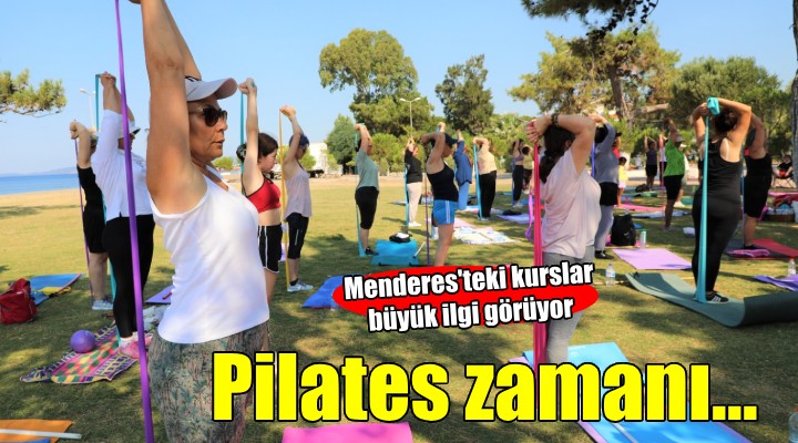 Menderes Belediyesi taraf?ndan kad?nlara yönelik düzenlenen pilates kurslar? renkli görüntülere sahne oluyor. ?lçe merkezi ve sahil bölgesinde ki kurslara kad?nlar büyük ilgi gösteriyor. Her ya?tan kad?n?n yer ald??? kurslar Pazartesi, Çar?ambe ve Cuma günleri Menderes Belediyesi Gençlik ve E?itim Merkezi’nde, Sal? ve Per?embe günleri ise Gümüldür Spor Salonu ve Özdere Gençlik Park?’nda gerçekle?iyor.