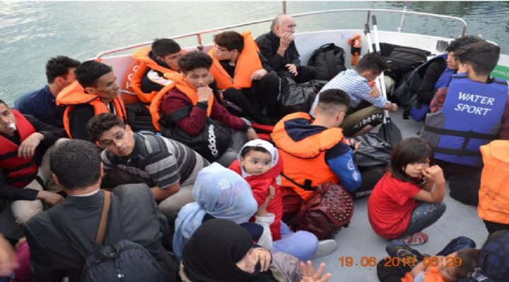 Menderes'in Özdere Mahallesi aç?klar?nda dün bir grup kaçak göçmenin yasa d??? geçi? yapt??? ihbar?n? alan ekipler, hemen harekete geçti. Sahil Güvenlik botu taraf?ndan tespit edilen lastik bot durduruldu. Afganistan uyruklu 17'si erkek, 8'i kad?n, 15'i çocuk toplam 40 kaçak göçmen yakaland?.