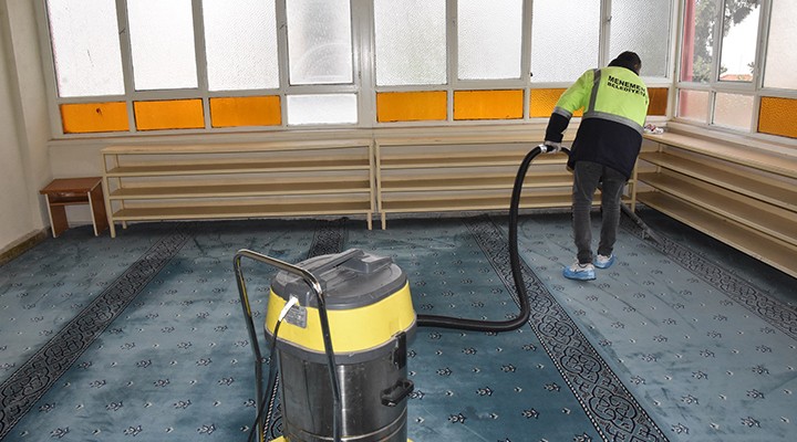 Menemen Belediyesi Temizlik ??leri Müdürlü?üne ba?l? ekipler, her y?l oldu?u gibi bu y?l da yakla?an Ramazan ay? öncesinde harekete geçti. Ekipler, ilçe s?n?rlar? içerisindeki tüm ibadethanelerde temizlik ve dezenfektan çal??mas? ba?latt?. Bu kapsamda hal?lar y?kand? ve süpürüldü. ?ad?rvanlar, abdesthaneler ve lavabolarda temizlenerek dezenfekte edildi. Pencereler, kap?lar, camlar ve duvarlar da büyük bir titizlikle silindi. Yine camilerin bahçelerinde de çevre temizli?i yap?ld?.