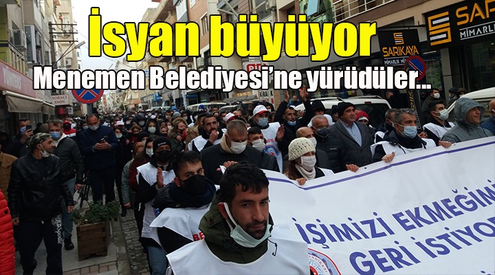 Menemen'de AK Partili Ayd?n Pehlivan'?n belediyeyi CHP'li Deniz Karakurt'tan devralmas?ndan sonra i? ba?? yapt?r?lmayan META-SU ve MENA? ?irketlerinde çal??an 660 i?çi, bugün Menemen Cumhuriyet Meydan?'ndan belediye binas?na yürüdü. ??çilere Türk-??'e ba?l? Belediye ?? Sendikas?'n?n ?zmir'deki di?er ?ubelerinden de büyük destek geldi. Yo?un bir kalabal?k belediye binas?na kadar yürürken, Belediye ?? Genel Ba?kan Yard?mc?s? Bayram Özkan, AK Partili Ayd?n Pehlivan'a i?çilerin i? ba?? yapt?r?lmas? için ça?r?da bulundu.