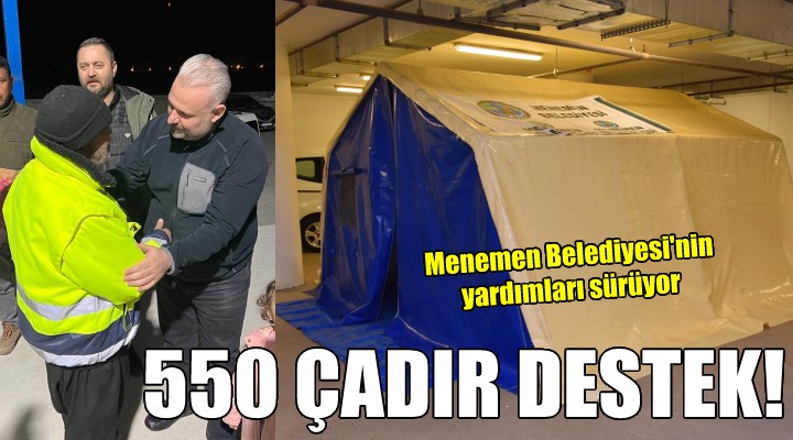 Menemen Belediyesi, Kahramanmara?’ta meydana gelen ve 10 ilde büyük y?k?ma neden olan 2 büyük depremin ard?ndan ba?latt??? yard?m seferberli?ini ilk günden itibaren h?z kesmeden sürdürüyor. Daha önce afet bölgesine deprem sonras? ihtiyaç duyulan g?da, giyim, jeneratör gibi malzemeler dolu 25 t?r? afet bölgesine gönderen Menemen Belediyesi, ?imdi de bar?nma ihtiyac?n? gidermek için 550 çad?r? afet bölgesine gönderdi.
