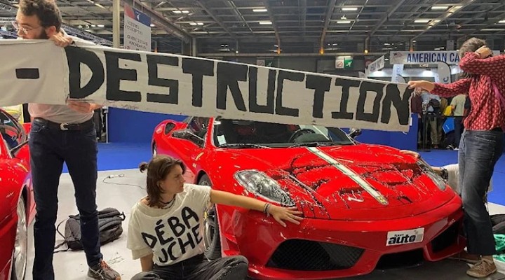 Fransa’da dün ak?am “Extinction Rebellion” adl? çevreci gruba üye aktivistler, Uluslararas? Otomobil Fuar?’nda eylem yapt?.