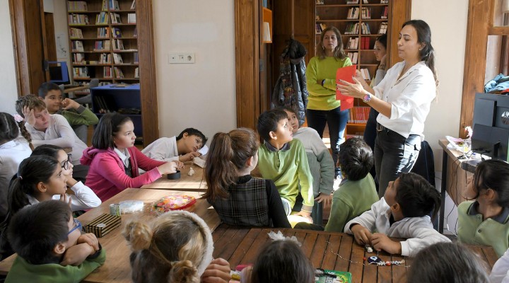 ?brahim Zeki Emgin ?lkokulu’ndan gelen yakla??k 30 ö?rencinin kat?l?m sa?lad??? etkinlikte çocuklar Ay?e Harmankaya e?li?inde çe?itli renklerdeki keçeleri plastik i?nelere geçirdikleri ipliklerle dikerek kendilerine kalemlik yapt?.