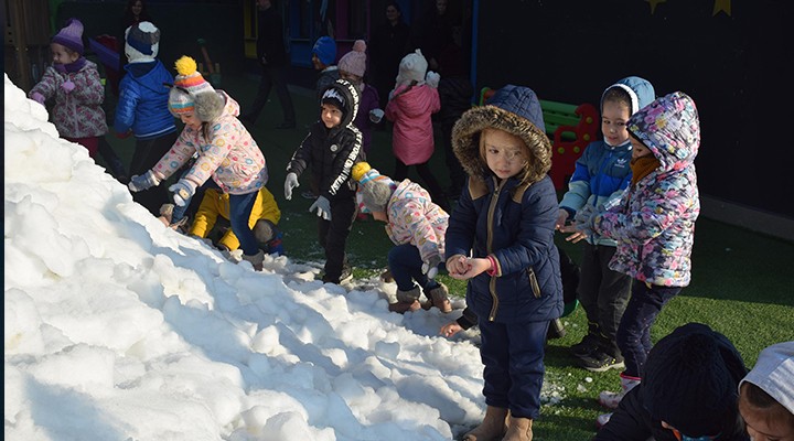 Manisa'daki Spil Da??'ndan kamyonla al?narak ?zmir'in Gaziemir ilçesindeki özel bir e?itim kurumuna getirilen kar, hayatlar?nda ilk defa kar gören ö?rencileri hem ?a??rtt? hem de mutlu etti. Ö?renciler okul bahçesine bo?alt?lan karla, kar topu oynad?. Baz? ö?retmenler de ö?rencilerin e?lencesine ortak oldu. E?itimin sadece akademik anlamda olmad???n? ayn? zamanda e?lencenin de bir parças? oldu?unu belirten beden e?itimi ö?retmeni Do?an Da?lum, "?zmirli çocuklar?n birço?u genelde karla tan??am?yor. Ö?rencilerimiz aras?nda kar? ilk defa gören çocuklar?m?z var. O heyecan? ve mutlulu?u onlarla payla?mak ad?na böyle bir ?ey dü?ündük. E?itimin sadece akademik anlamda olmad???n? ayn? zamanda e?lencenin de bir parças? oldu?unu göstermek istedik. Onlar? mutlu edebilmek ve bu konuda destekleyebilmek bizim için en büyük mutluluk. Onlar?n bu mutlu halini görmek bizim için en büyük kazanç" diye konu?tu.