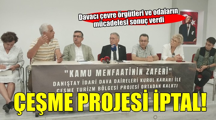 ?zmir Tabip Odas? Konferans Salonu'nda yap?lan aç?klamada Dan??tay ?dari Dava Daireleri Kurulu'nun karar?n?n Çe?me Projesi'ni geri dönü?ü olmayan ?ekilde iptal etti?ine dikkat çekildi.